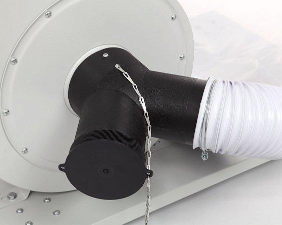 Благодаря адаптеру, входящему в комплект поставки, возможно подключение сразу двух станков, если используется только один вход, то нужно закрыть один из патрубков специальной крышкой.