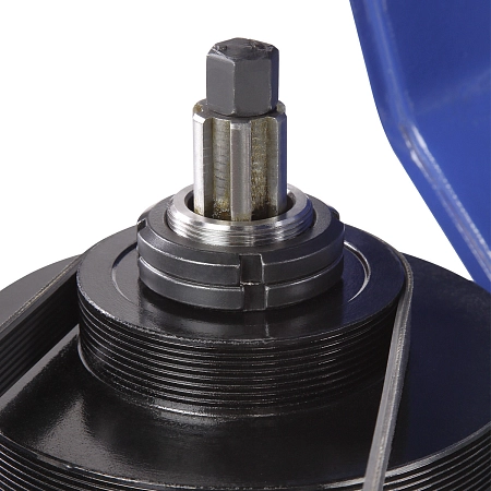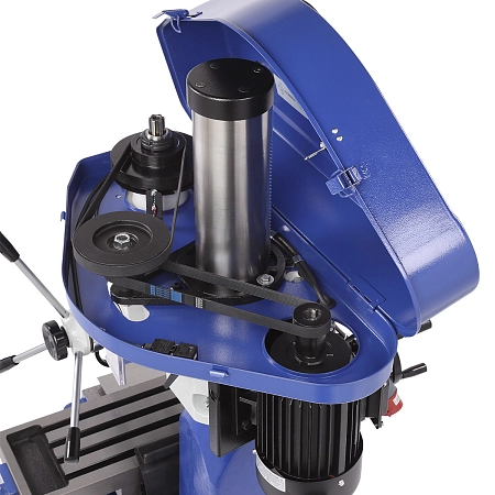 Передача вращения на шпиндель осуществляется ременным приводом с использованием поликлиновых ремней. Механическая часть привода включает шкив электродвигателя, промежуточный двухступенчатый шкив и шкив шпинделя. Перестановка ремня позволяет выбрать один из двух диапазонов частоты вращения.