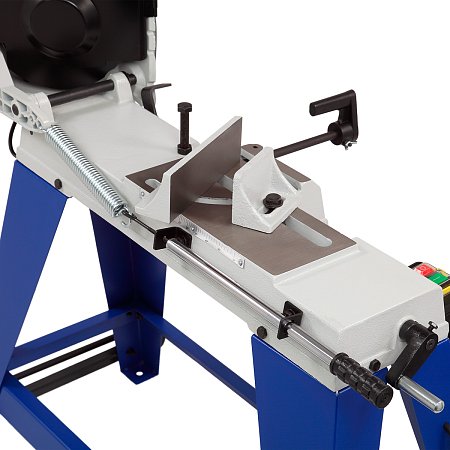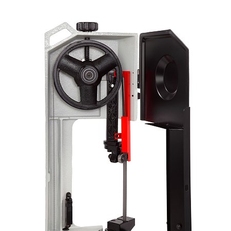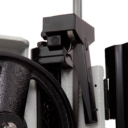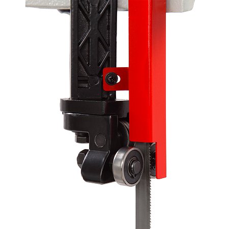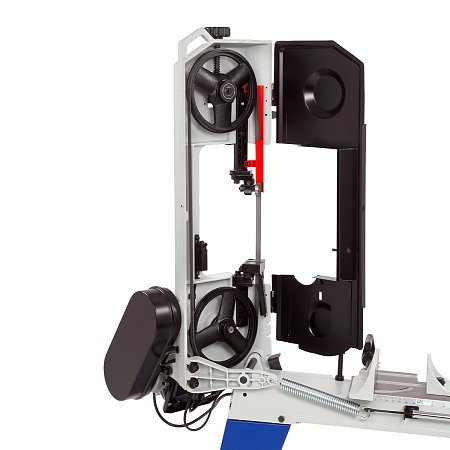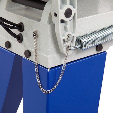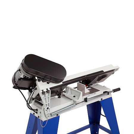 Пильная рама опускается вручную, при этом компенсирующая пружина уменьшает требуемое усилие. Натяжение пильного полотна осуществляется вручную специальной ручкой.