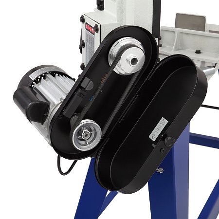 Станок оснащен асинхронным двигателем мощностью 550 Вт, работающим от сети 230 В. Переключение между тремя скоростями резания 21/30/44 м/мин осуществляется перекидыванием клинового ремня.