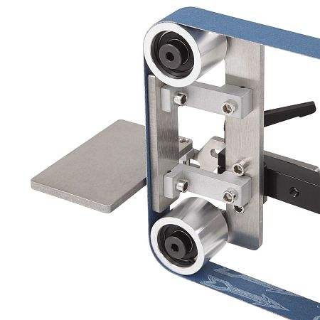 Благодаря возможности наклона шлифовального узла на 90° станок адаптируется к разным задачам. Его можно эксплуатировать как в горизонтальном, так и в вертикальном положении. Для этого в комплект входят два рабочих упора.