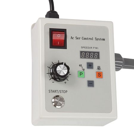 Через блок управления осуществляется запуск, остановка и плавная регулировка скорости, что позволяет настроить станок под конкретную задачу.