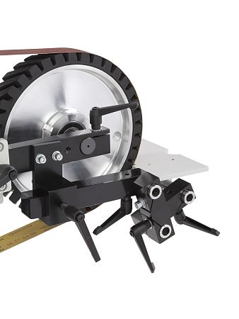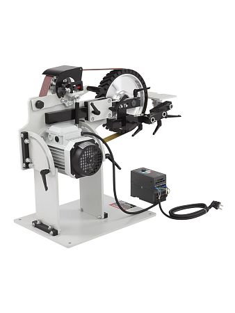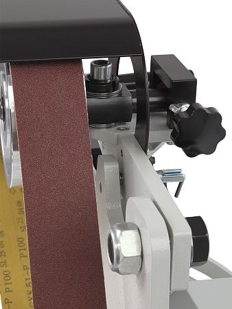 Модель имеет регулятор скорости движения шлифовальной ленты в диапазоне 0-28 м/с, который находится на блоке управления. Также есть возможность включить реверсивное движение ленты.