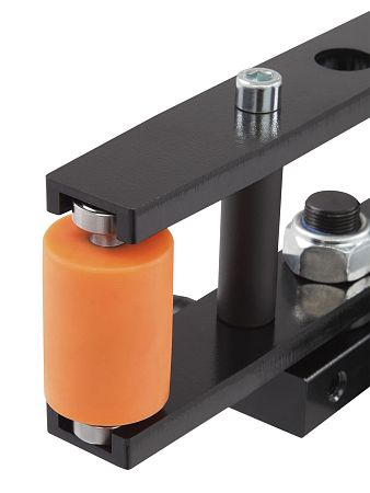 Механизм натяжения ленты оснащен регулировочным роликом. Это позволяет корректировать положение ленты. Длину направляющей можно настраивать, что дает возможность устанавливать ленты разной длины. Для безопасности оператора предусмотрен защитный кожух.