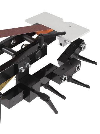 Станок рассчитан на использование лент шириной 50 мм. В комплект входят три ленты длиной 1829 мм с разной зернистостью: 100, 180 и 240 грит. Конструкция поддерживает установку лент длиной от 1630 до 2248 мм.