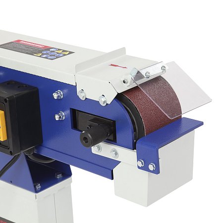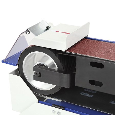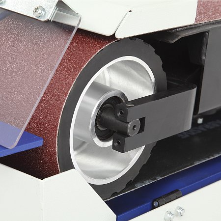 На станке установлена шлифовальная лента размером 1220х100 мм и зернистостью 80 грит. Скорость движения шлифовальной ленты составляет 19 м/с. Применение шлифовальных лент разной зернистости позволяет использовать станок для обработки различных материалов.