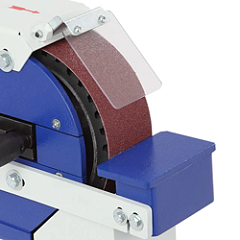 Регулируемый упор обеспечивает стабильное позиционирование заготовки во время обработки. Экран защищает от металлических опилок и искр