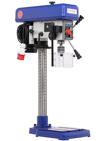 Питание осуществляется от трехфазной сети переменного тока напряжением 400 В (тип вилки - TH-015T). Электродвигатель асинхронный мощностью 550 Вт, режим работы S1. Модель компактная, имеет настольную установку. Основание и корпус сверлильной головки изготовлены из чугуна.
