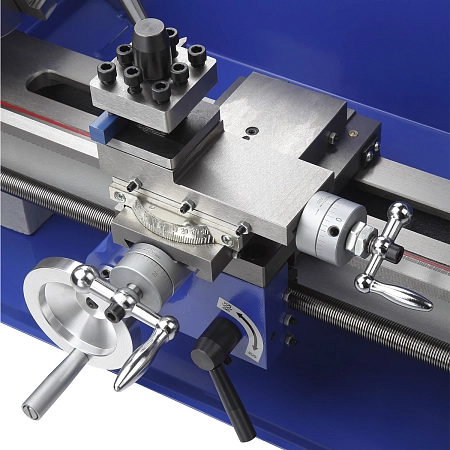 - Реверс, точная подача суппортов с шагом 0,025 мм, поворот продольного суппорта ±40° и 4-позиционный резцедержатель дают полный контроль над обработкой
