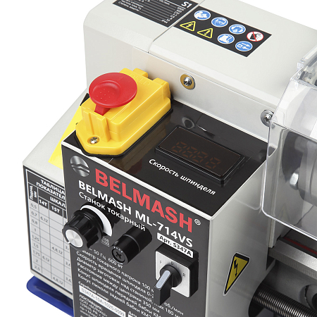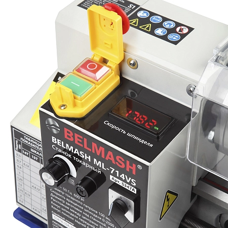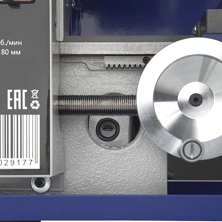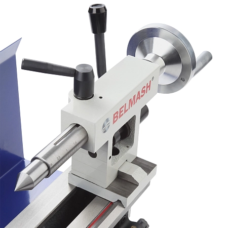 Станок имеет плавную регулировку частоты вращения шпинделя в диапазоне 0–2500 об/мин, что позволяет точно подобрать режим обработки под материал и тип операции. Шпиндель с конусом МТ3 и сквозным отверстием 20 мм обеспечивает работу с длинными заготовками, а задняя бабка с конусом МТ2 и ходом пиноли до 60 мм повышает универсальность станка.