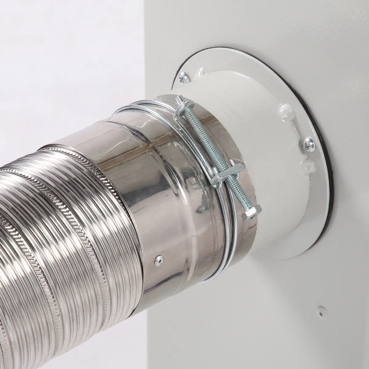Соединительный шланг (100×1800 мм) изготовлен из нержавеющей стали, а фильтр-мешок огнестойкой ткани. Они обеспечивают надежность и долгую службу.