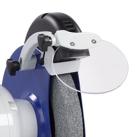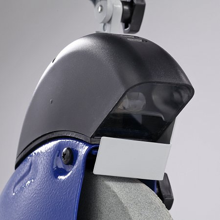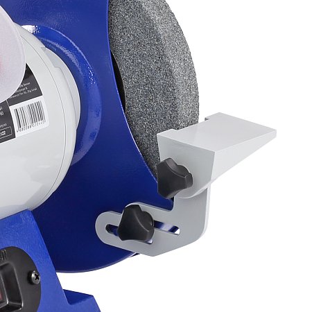 Каждый диск оснащен регулируемыми рабочими упорами (подручниками) из литого алюминия. Один из них с выемкой - для удобства работы, например, заточки стамесок.