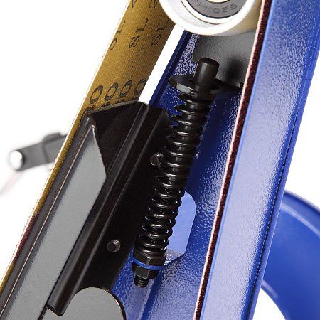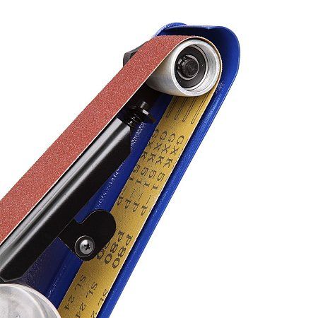 Регулируемый упор для обрабатываемого материала имеет возможность перемещения ближе или дальше относительно шлифовальной ленты, что помогает оператору в работе.
