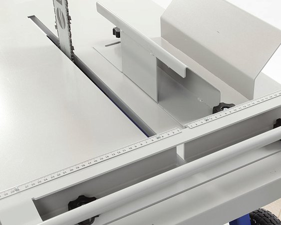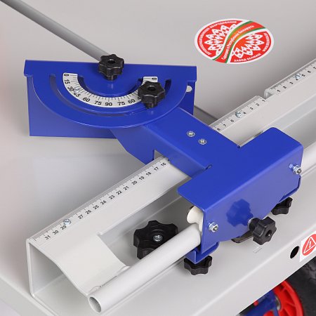 Благодаря упору и угловому устройству осуществляется точное позиционирование и последующий распил блока. Станок укомплектован фасочным приспособлением, позволяющим осуществить снятие кромки с распиливаемого материала.