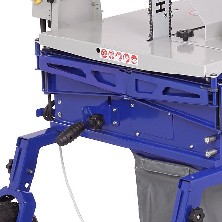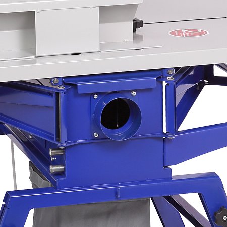Отходы резания собирают в специальный мешок в нижней части станка. Возможно подключение системы пылеудаления, диаметр патрубка 100 мм.