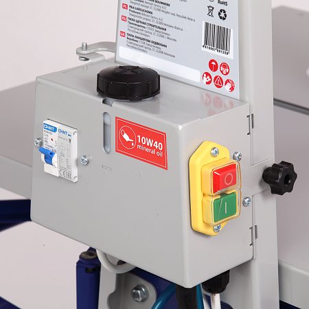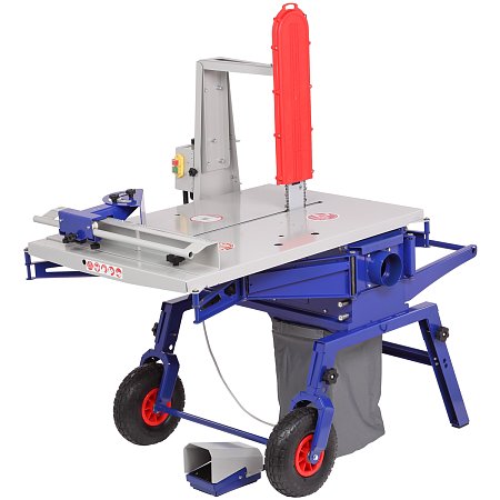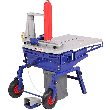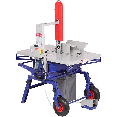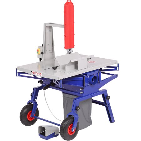 Станок снабжён колёсной парой и ручкой для перемещения. Колеса пневматические. Педаль включения на время хранения и транспортировки можно подвесить на специальный крюк под панелью управления.