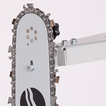 Режущий инструмент станка — вертикально закреплённая на нём шина с цепью. Цепь специальная — с твердосплавными напайками. Неиспользуемая часть шины прикрывается регулирующимся по высоте кожухом, закреплённым на кронштейне. Предусмотрена смазка цепи: при работающем двигателе открывается специальный клапан и масло из бака по трубкам поступает к шине и далее — на цепь. Натяжение цепи регулируется перемещением двигателя вверх-вниз (для этого на станке имеется приводной механизм с вращающейся рукояткой). Бак для масла, основной выключатель и клапан собраны в едином блоке — панели управления. Уровень масла контролируется через «окошко» на корпусе блока.