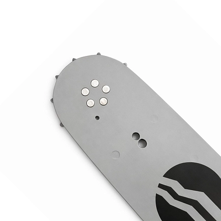 Сварная конструкция рассчитана на высокие нагрузки и длительную эксплуатацию. Шина оснащена посадочным пазом типа QR20-63ER и отдельным отверстием для эффективной подачи масла к цепи, что обеспечивает точную посадку, надежную смазку и снижение износа пильного узла.