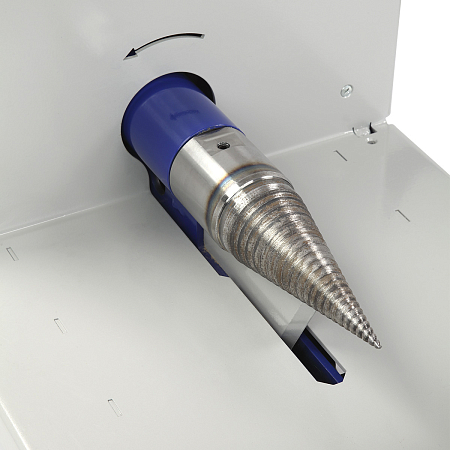Винтовой конус диаметром 59 мм и длиной 196 мм оснащён однозаходной упорной резьбой, которая повышает лёгкость раскалывания древесины и снижает нагрузку на двигатель, что напрямую увеличивает ресурс станка.