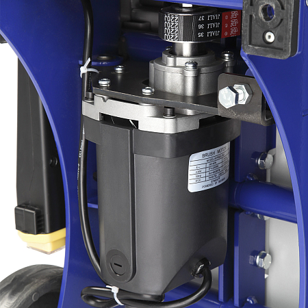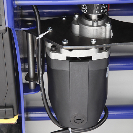 В основе дровокола — коллекторный однофазный двигатель 2000 Вт, рассчитанный на режим циклической работы (S6–40%).