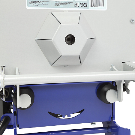 Металлический кожух закрывает вращающийся конус, предотвращая попадание рук и посторонних предметов в опасную зону. В кожухе имеется шестигранное отверстие для ключа — это позволяет легко освободить застрявшее бревно при заклинивании, не разбирая станок.
