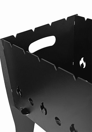 2) Долговечность. Все элементы мангала выполнены из стали толщиной 2 мм, а значит он не прогорит от высокой температуры, не деформируется при частом использовании и прослужит не один сезон.) Система фиксации шип - паз дна и четырёх стенок (бортов) мангала, увеличивающая общую жесткость конструкции.