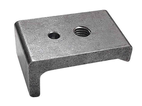 Деталь используется в каретке фуговальных станков BELMASH J150/730A, BELMASH J150/730AH. Блок изготовлен из стали. Является фиксирующим элементом параллельного упора. Имеет два сквозных отверстия: диаметром 6 мм и резьбовое М8.
