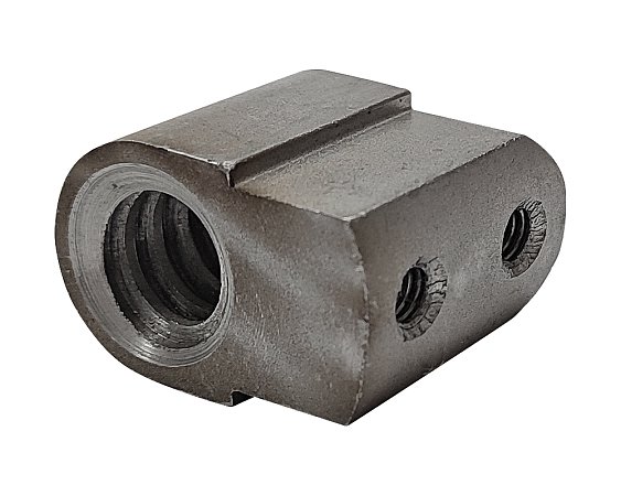 Деталь предназначена для рейсмусовых станков BELMASH P380ARB, P380ARBH. Имеет отверстие под ходовой винт и два резьбовых отверстия (M5). Изготовлена из стали.