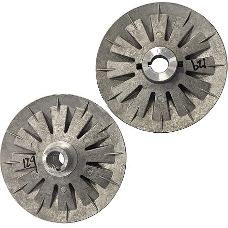 Шкивы изготовлены из алюминия. Посадочный диаметр - 15,8 мм. Устанавливаются на вал асинхронного электродвигателя и крепятся с помощью шпонки, а верхний шкив (поз. 85) фиксируется установочными винтами.