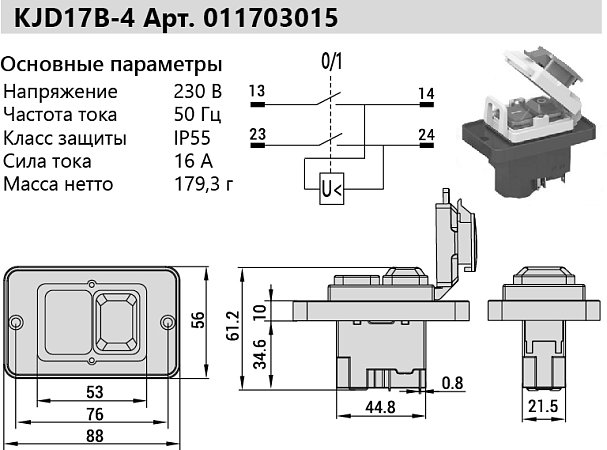 Выключатель KJD17B-4. Имеет группу электрических контактов, которые обеспечивают работу элемента в электрической сети станочного оборудования. Коммутация осуществляется за счет их замыкания либо размыкания. Являются универсальными, используются во многих типах дерево и металлообрабатывающих станков. При временном отключении электроэнергии и последующем включении не произойдёт самопроизвольный запуск инструмента.